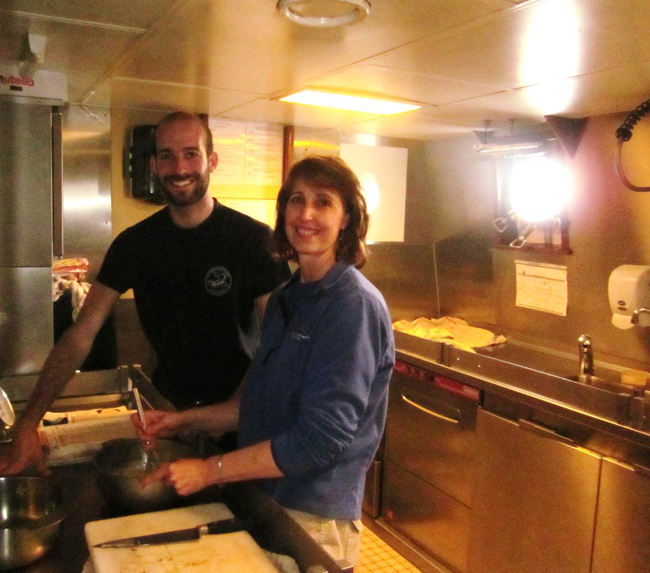 Back to life at sea.  There are many moments when I have embarrassed myself – such as when the cap from my hair spray bottle fell into the sink and went down the drain, and the engineer had to take the entire drain apart to retrieve it (why don’t they have those little mesh catchers in the drains?) I guarantee they are going to be seeing a lot more of this when they have women on board.  And there was the time when at 1:00 a.m. I went searching for the bathroom and accidentally walked into the XO’s room.  Oops.  It’s mighty dark on this ship at night.  And then there was the time when I attempted to make a bowl of instant oatmeal, and it exploded all over the microwave. There is nothing to do but apologize and laugh, and get on with it.