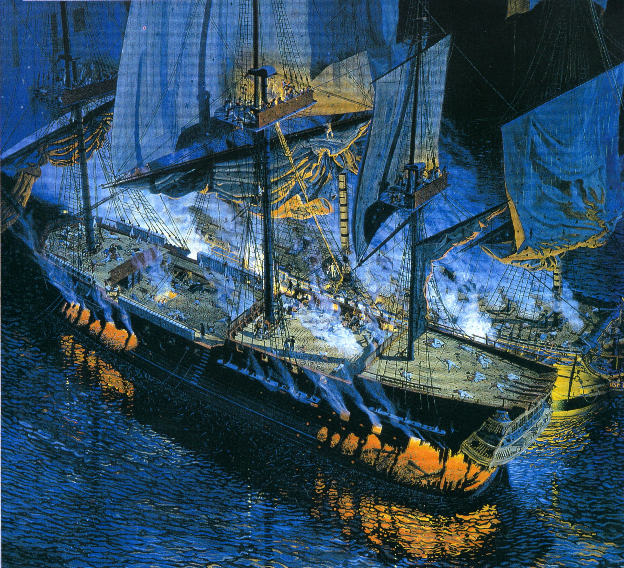 Depiction of the Battle of Flamborough Head, by Dean Mosher.